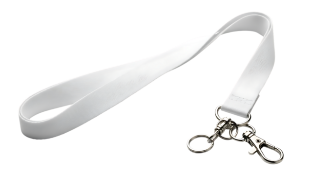 White Lanyard with Metal Clip on Transparent Background for Identification Badge
