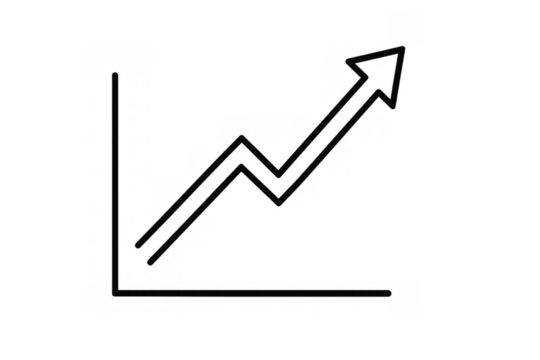 Upward trending arrows highlighting financial growth displayed on clean line chart with transparent background, ready for graphic design integration