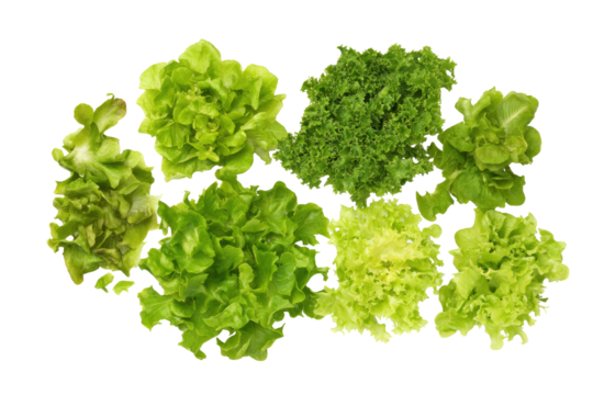 Symmetrical baby lettuce pattern isolated on transparent background, excellent for infographic templates and meal-prep planners