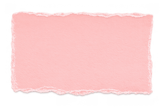 Pink torn paper with distressed, rustic edges isolated on transparent background creating a unique texture design