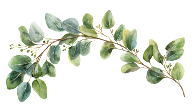 Herbal eucalyptus leaves frame isolated on a white transparent background, png.  Greenery wedding simple minimalist invitation. Watercolor style card.