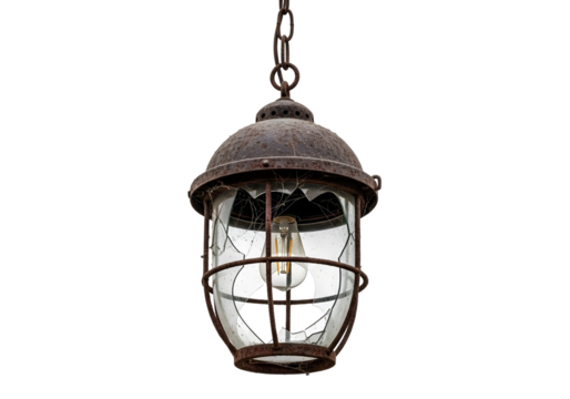 Antique hanging lantern with glass and metal details isolated on transparent background