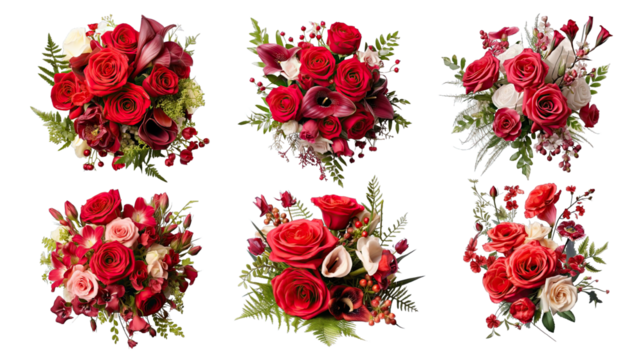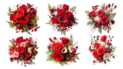 Collection of PNG. Red rose and eustoma flowers isolated on a transparent background.