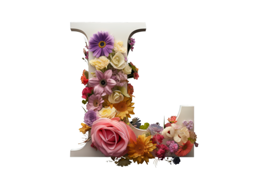 3d letter 'i' made of floral elements with studio lighting and PNG transparent background, perfect for elegant and artistic design projects, floral-themed invitations, and creative typography applicat