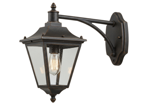 Antique style wall mounted lantern with glass enclosure and filament bulb