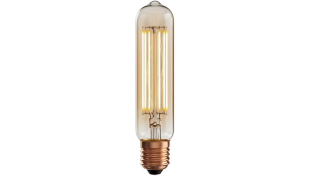 Vintage Edison light bulb PNG isolated on transparent background, antique style filament lamp for retro design and decoration