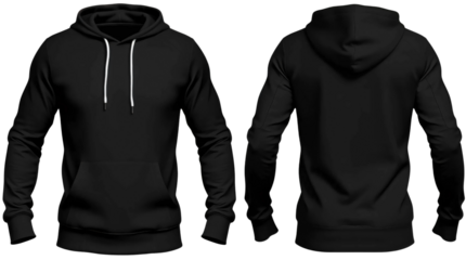 Blank black hoodie template. Hoodie sweatshirt long sleeve with clipping path, hoody for design mockup for print, isolated on transparent background.