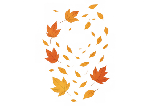 Autumn maple leaves falling and scattering, a seasonal change bringing warmth and natural beauty, transparent background