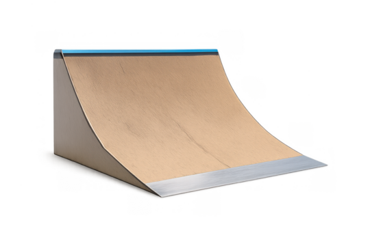 Metal quarter pipe ramp for skateboarding at a skate park isolated on a transparent background