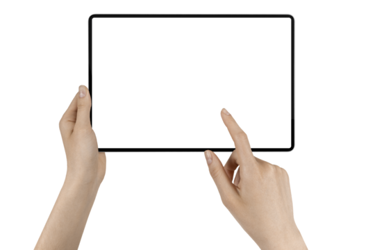 Hands Holding Tablet Mockup with Blank Screen, Perfectly Isolated on White Background