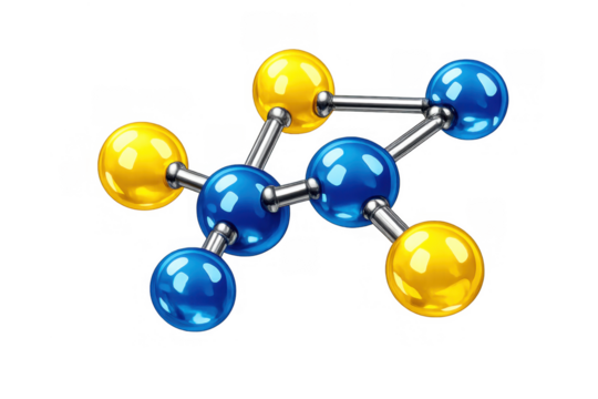 Abstract molecular structure showing chemical bonding, science, education, research, and medicine concept on transparent background