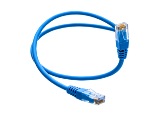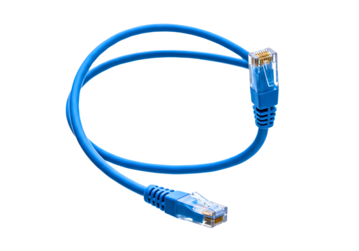 Blue ethernet network cable with rj45 connectors isolated on transparent background