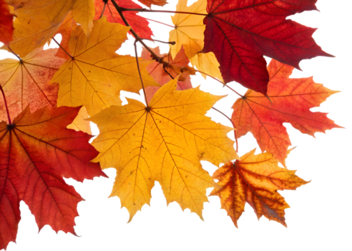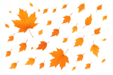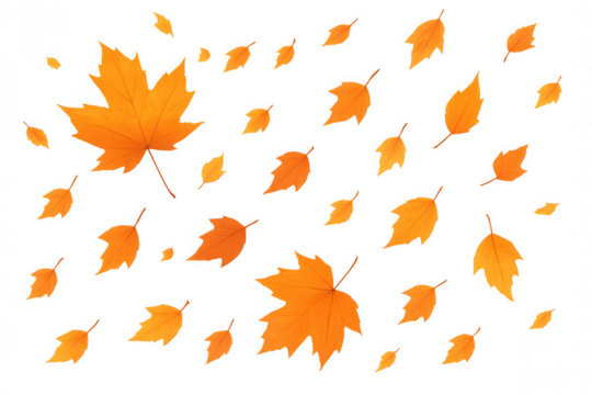 Autumn leaves falling, scattered maple and oak foliage creating a vibrant seasonal pattern on transparent background