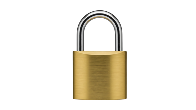 Golden padlock isolated on transparent background