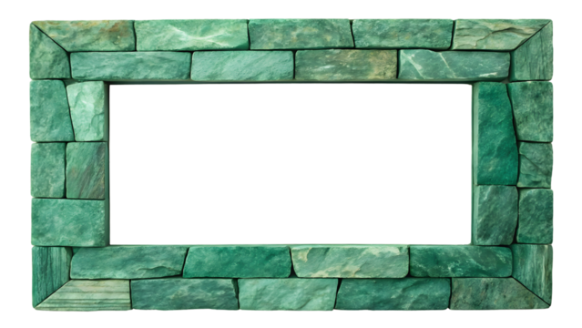 Elegant green stone frame with polished blocks arranged in sophisticated rectangular pattern, isolated on a transparent background