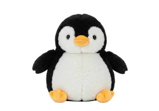 Adorable fluffy cartoon baby penguin with big eyes isolated on transparent background