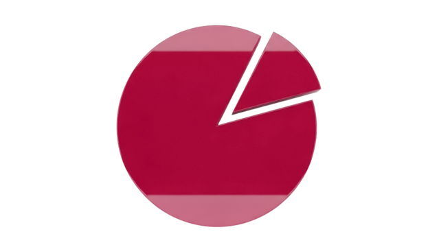 Shiny crimson pie chart with a missing slice isolated PNG, data visualization element on transparent background for business reports