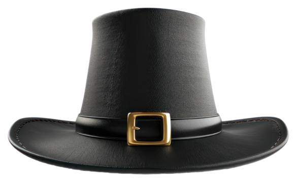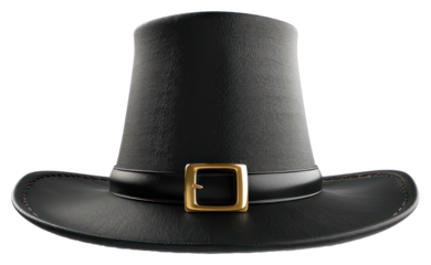 Black pilgrim hat with silver buckle, representing thanksgiving traditions, colonial history, and autumn harvest festivals