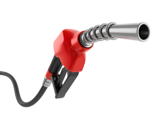 Gasoline pump nozzle handle with black hose isolated on transparent background