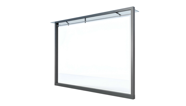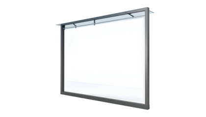 Empty, modern, rectangular outdoor billboard with dark frame and support poles, isolated against a transparent studio background with copy space, concept for advertising potential