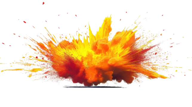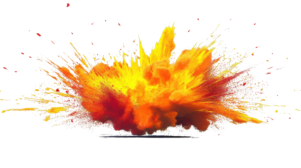 Colorful explosion of powder paint creating a vibrant blast on transparent background