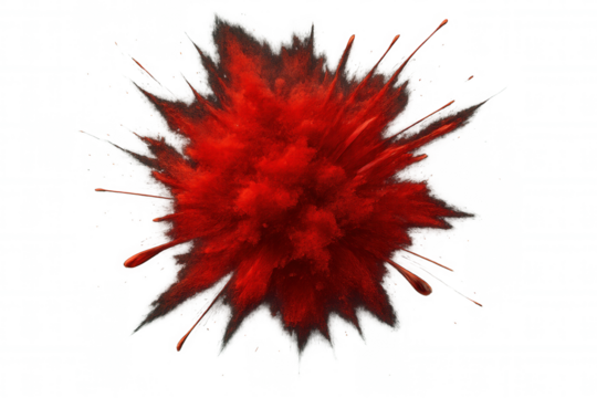 Red powder exploding against a transparent background, creating a vibrant cloud of color, perfect for adding a dynamic element to any design