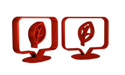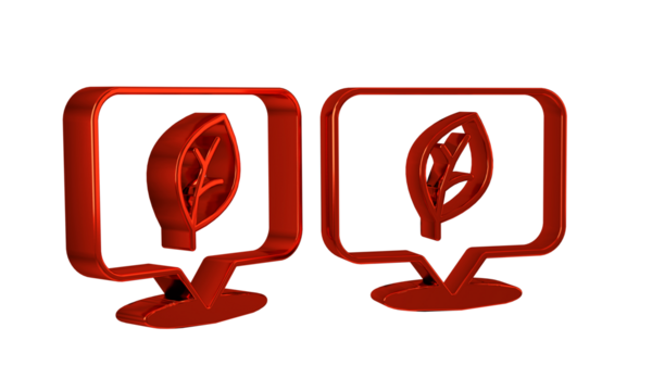 Red Location with leaf icon isolated on transparent background. Eco energy concept. Alternative energy concept.