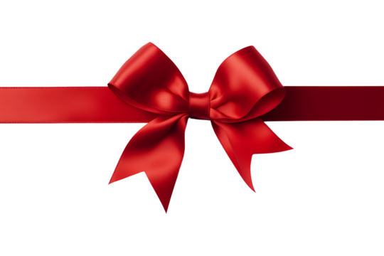 red ribbon bow with a smooth satin texture isolated on white and transparent background
