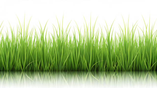 Lush green grass blades with subtle reflections on a white background isolated on a transparent background