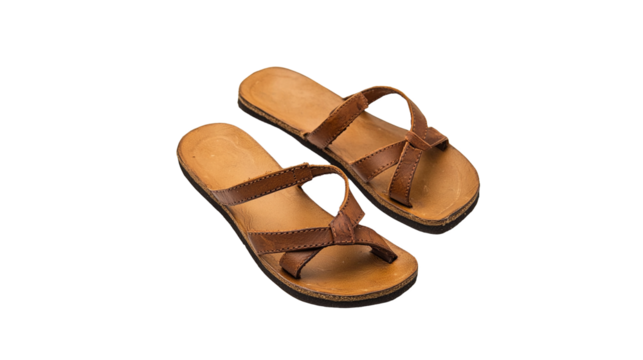 Brown leather sandals cross strap design isolated on transparent background