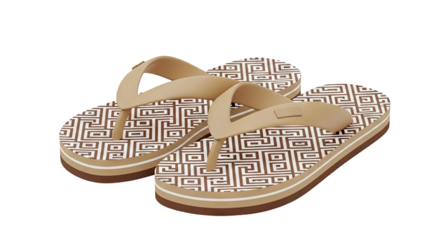3D Brown Geometric Pattern Flip Flops on transparent background