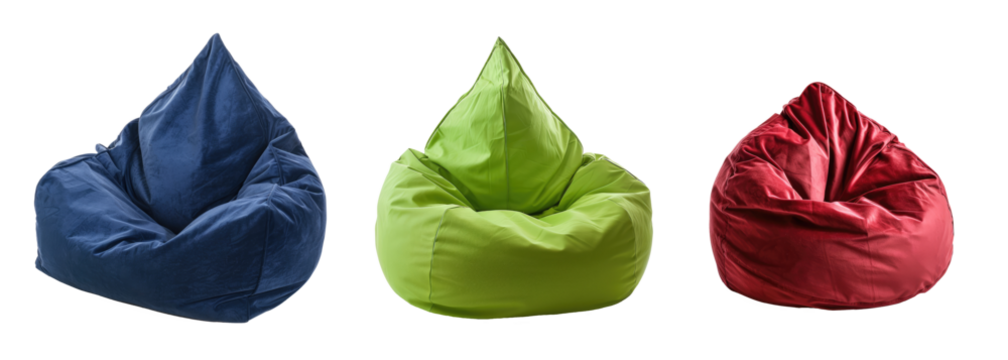 set of colored bean bag seats isolated on white or transparent png