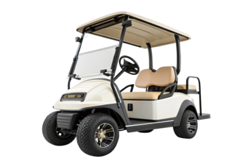 Set of Compact electric golf cart with two seats and canopy for outdoor activities isolated on transparent background, Cut out