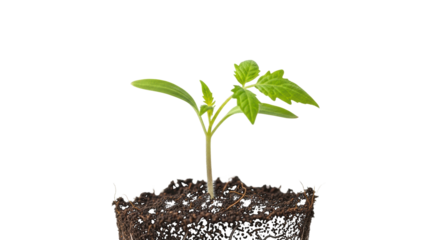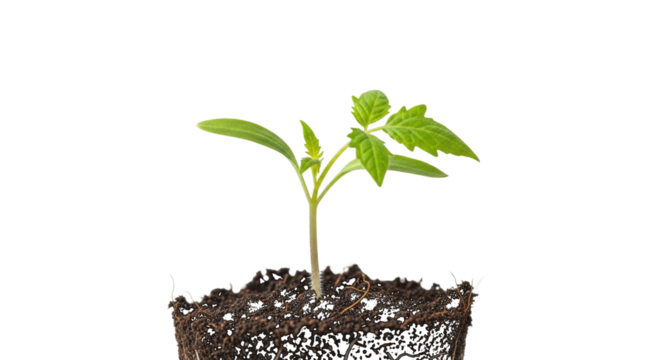 Dew kissed green sprouts emerge from dark soil symbolizing new life and growth against a stark on transparent background