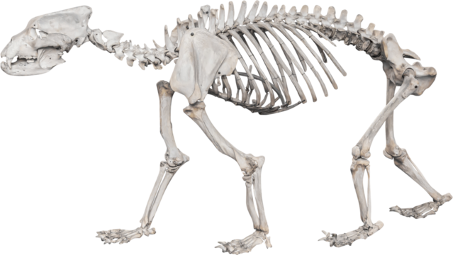 Isolated PNG cutout of a Siberian bear skeleton on a transparent background, ideal for photobashing, matte-painting, concept art