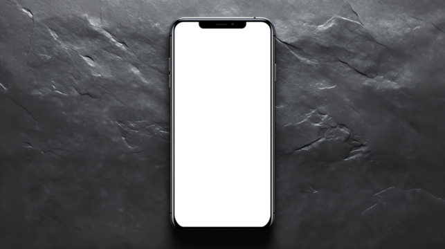 A white or transparent screen smartphone resting on a marble surface with minimalist decor around. elegant and modern composition.