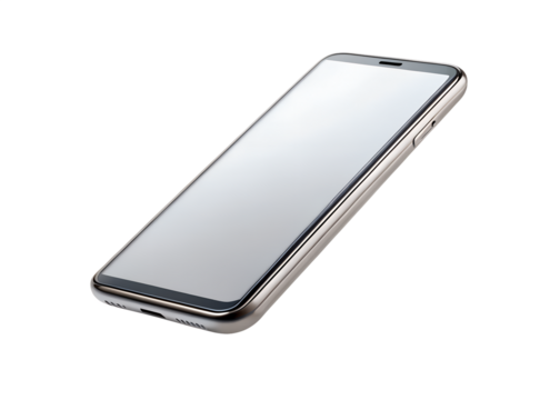Sleek silver smartphone with a blank screen isolated on transparent background