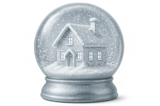 Snow globe with a cozy house covered by falling snow, creating a miniature winter wonderland, perfect for christmas or winter-themed projects