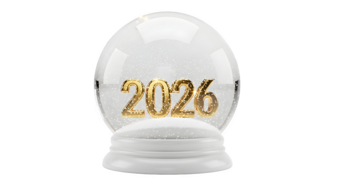New Year 2026 Snow Globe, isolated on transparent background