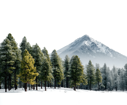 Snowy mountain landscape pine trees winter scene nature vista isolated on transparent background