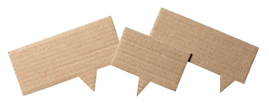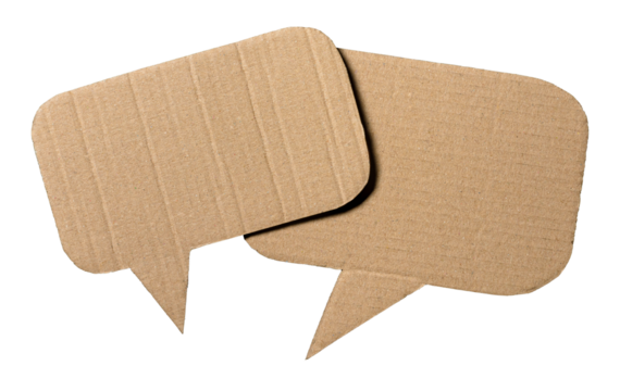 Brown blank cut out cardboard paper speech bubbles with copy space for text on transparent png background conversation discussion design element