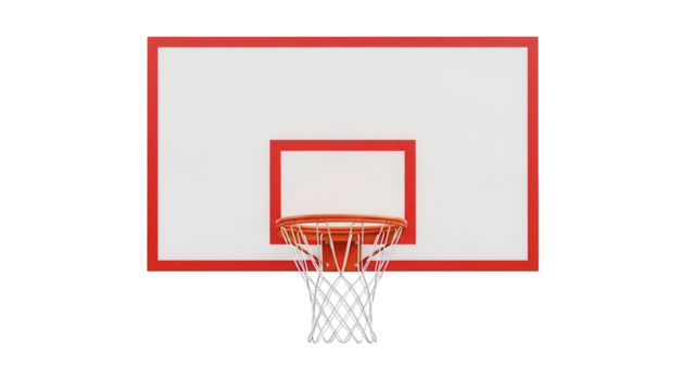 Basketball hoop with net isolated PNG, red frame and orange rim on transparent background for sports design and athletic themes