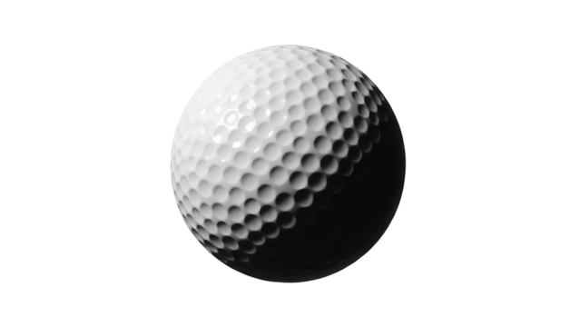 Monochrome golf ball PNG isolated on transparent background, dimpled sphere for sports equipment and recreational activity design