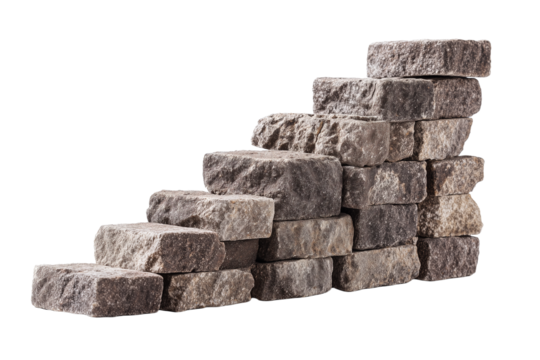 Mountain staircase constructed with stone blocks for elevated outdoor pathways and landscaping on transparent or white background