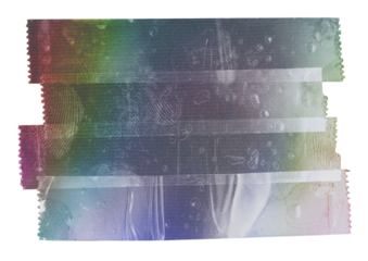 Duct tape and adhesive paper are arranged to form corners and arrow. Strips and pieces of wrinkled masking tape isolated on a transparent background.