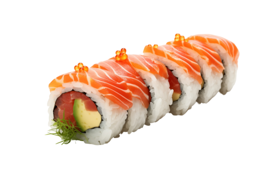 Set of Fresh Sushi Roll with Avocado and Salmon, Cut Out Isolated on Transparent Background