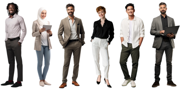 Diverse business professionals collaborating on transparent background