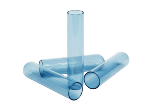 Empty glass test tube with transparent design for laboratory and science experiments, isolated on transparent white background.