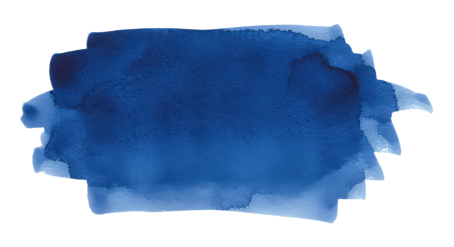 Abstract dark blue watercolor stain isolated on transparent background, a rich and textured artistic element