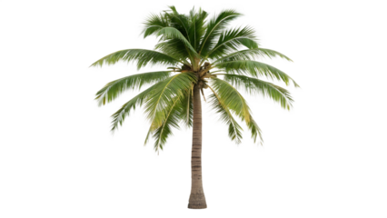 Coconut palm tree isolated on transparent background, a tropical symbol of relaxation and vacation, perfect for summer themed designs